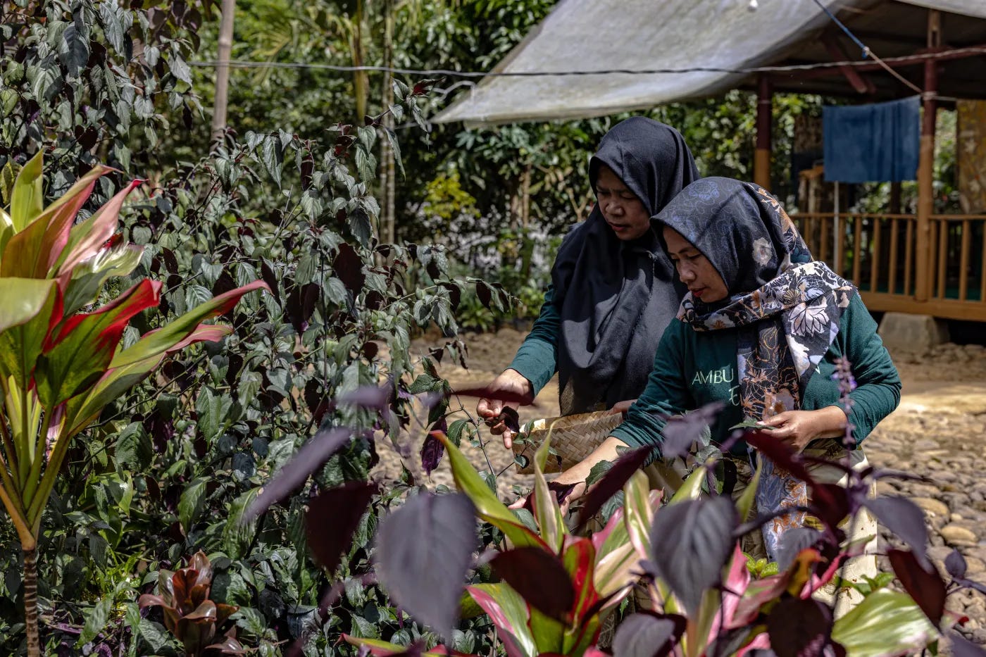 Plant artists, deep in Indonesia’s West Javan rainforest, are helping to promote the sustainable use of threatened rainforest. Calling themselves Ambu Halimun (translated as Mothers in Halimun in Sundanese), the women gather foliage which is rich in natural colours and tannins. The flowers are used for ecoprinting, whereby they are pressed onto fabric and steamed or boiled so that the pigments transfer to the cloth. Despite these women making a sustainable livelihood from the rainforest, their efforts are small-scale, with returns not as big as those from destructive ventures such as mining and logging.